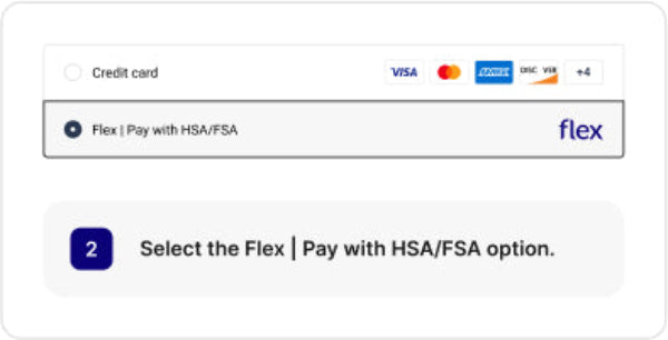To use your HSA or FSA debit card, add products to your cart as usual. At checkout, select “Flex | Pay with HSA/FSA” as your payment option, enter your HSA or FSA debit card, and complete your checkout as usual. If you don’t see “Flex | Pay with HSA/FSA,” you may be in Shop Pay. Select “checkout as guest” to view more payment options.